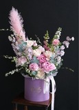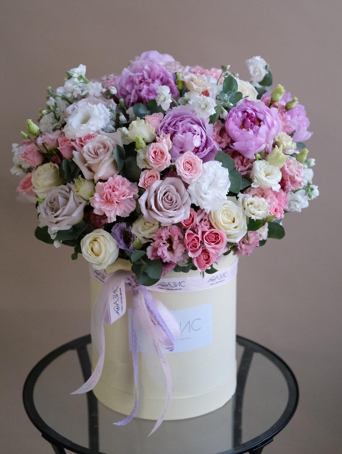 Большая композиция в шляпной коробке — когда хочется произвести впечатление и сказать больше, чем словами.