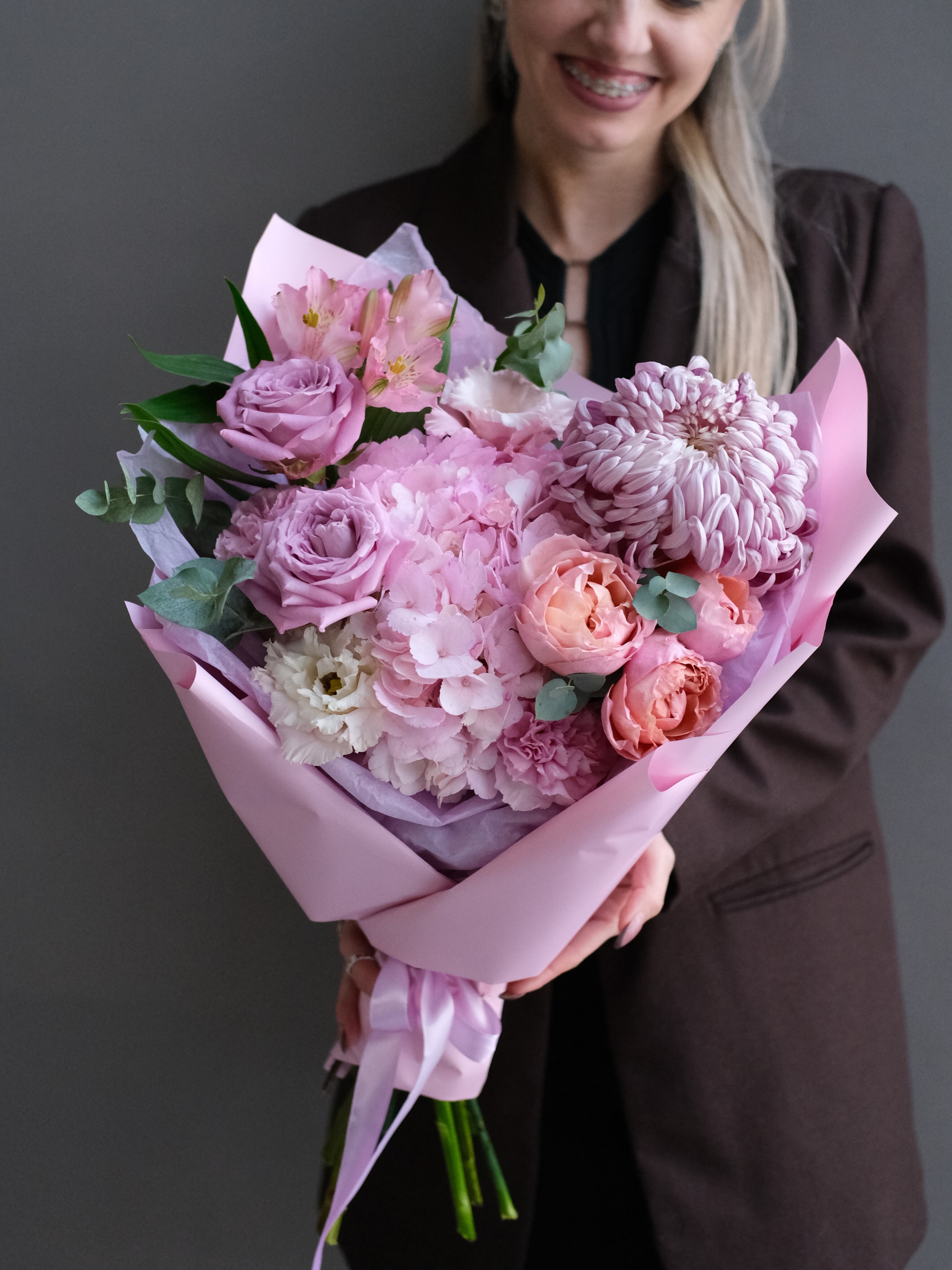 В этом букете — энергия красоты и щедрости. Он притягивает взгляд и рождает улыбку. Такой подарок невозможно забыть, ведь он становится центром внимания и символом вашего отношения к человеку.