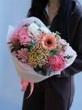Объятие из цветов — именно так можно назвать этот букет. Мягкие линии, живые краски, ощущение тепла и уюта, которое хочется забрать домой. Это не просто подарок, а маленький кусочек душевного комфорта.
