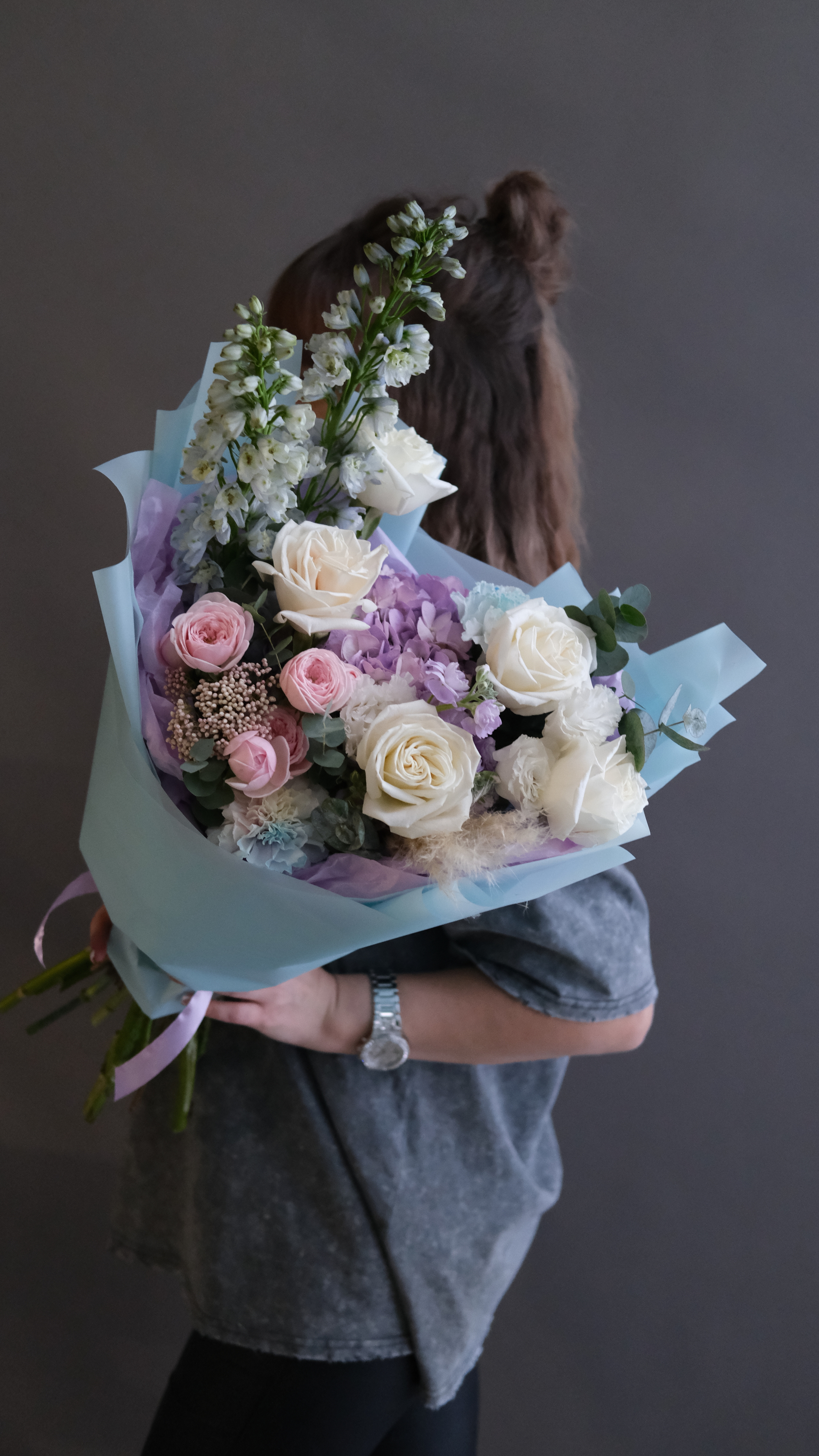 Этот букет — как обещание счастья. Нежный, но уверенный, он несёт в себе тепло и заботу. С ним каждый день становится ярче, а праздник — душевнее.