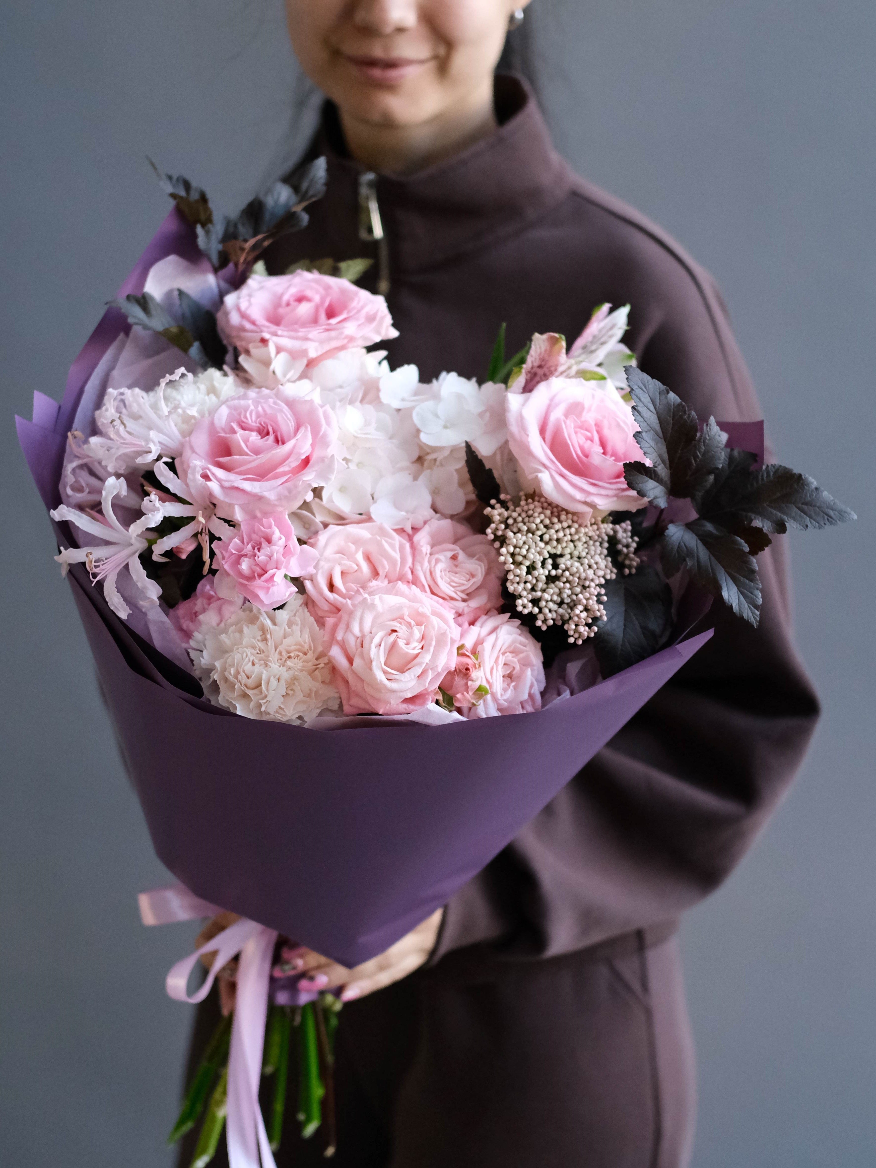 Объятие из цветов — именно так можно назвать этот букет. Мягкие линии, живые краски, ощущение тепла и уюта, которое хочется забрать домой. Это не просто подарок, а маленький кусочек душевного комфорта.