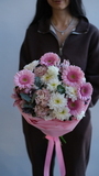 Этот букет — как обещание счастья. Нежный, но уверенный, он несёт в себе тепло и заботу. С ним каждый день становится ярче, а праздник — душевнее.