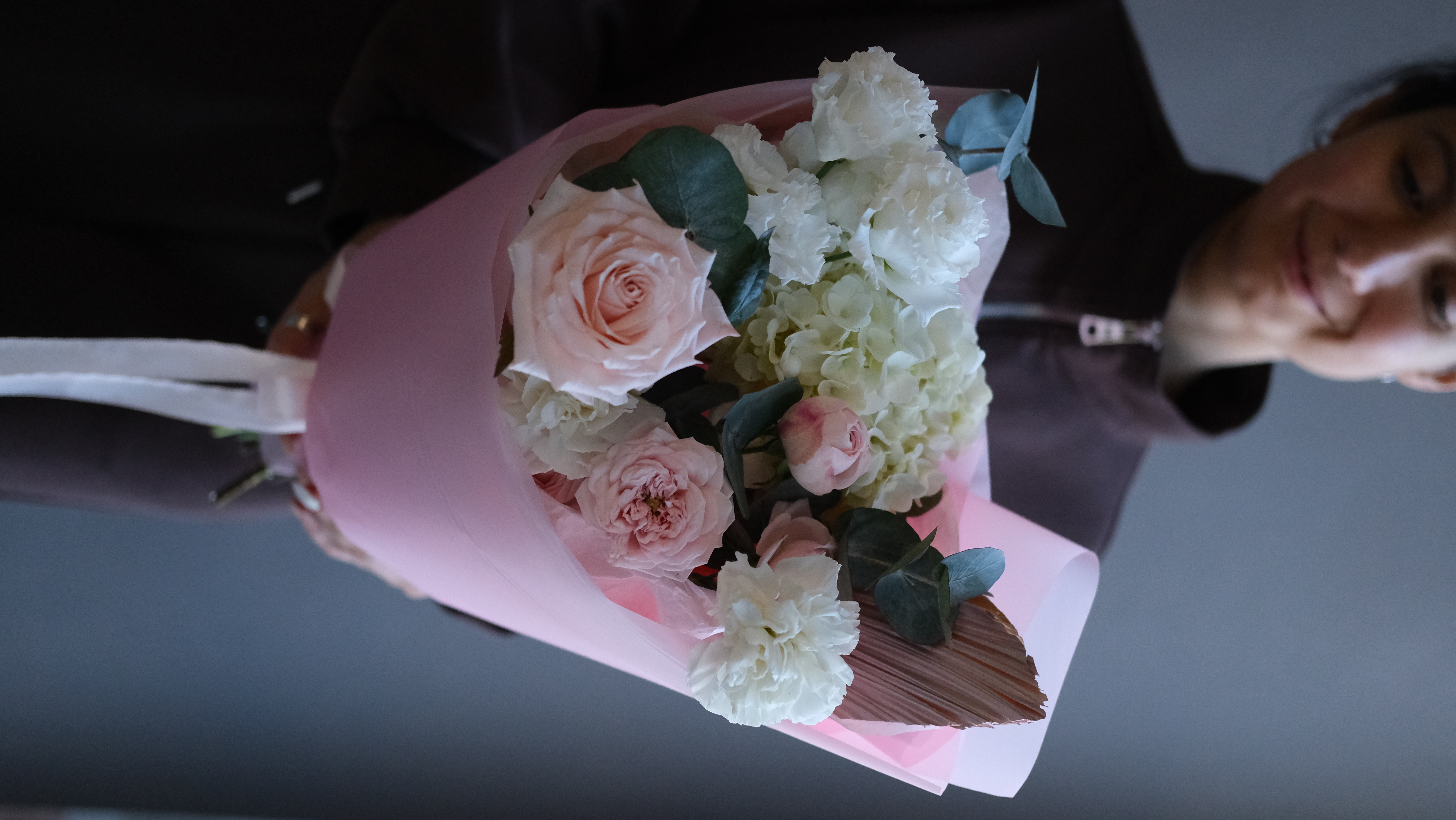 Объятие из цветов — именно так можно назвать этот букет. Мягкие линии, живые краски, ощущение тепла и уюта, которое хочется забрать домой. Это не просто подарок, а маленький кусочек душевного комфорта.