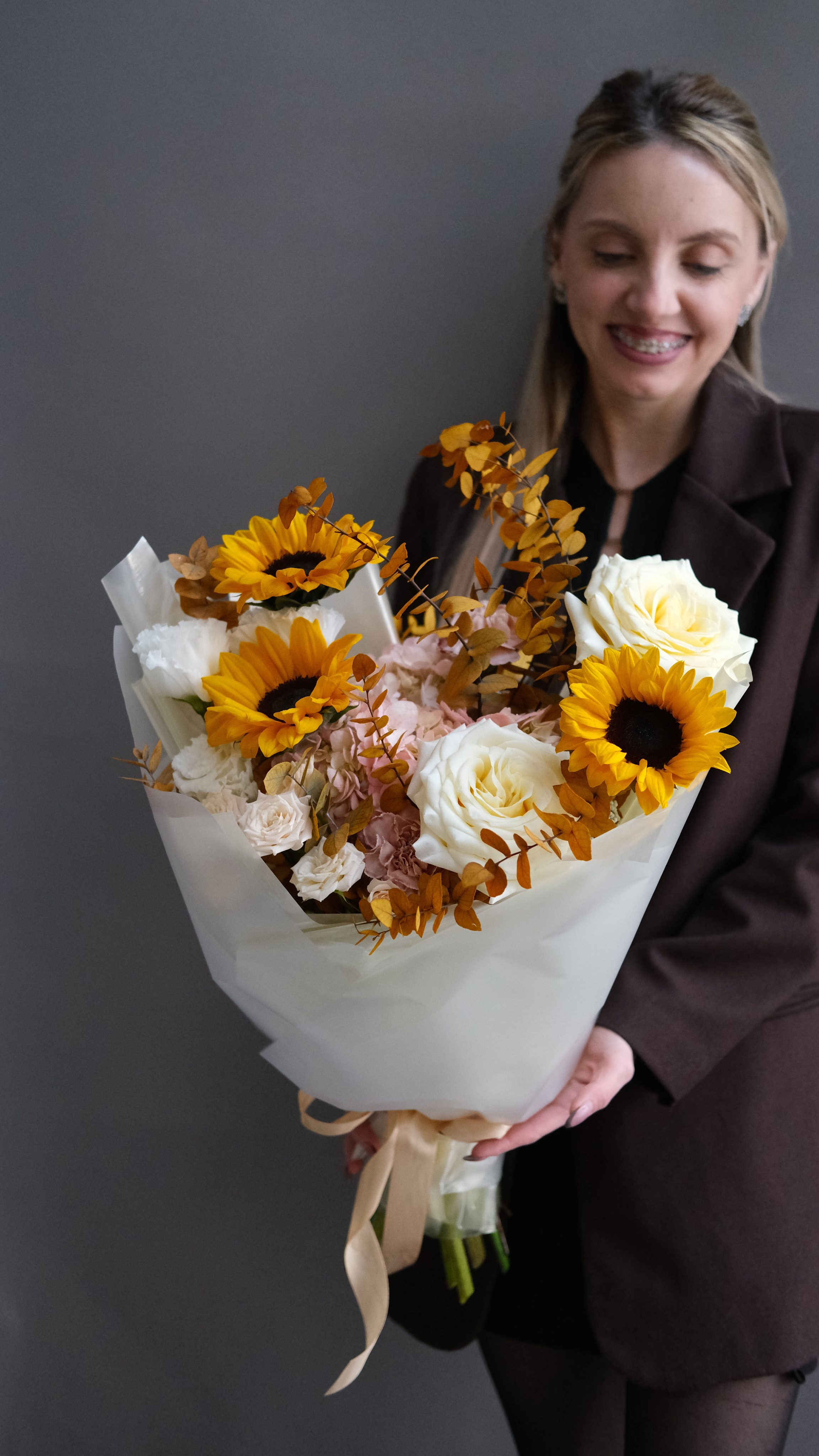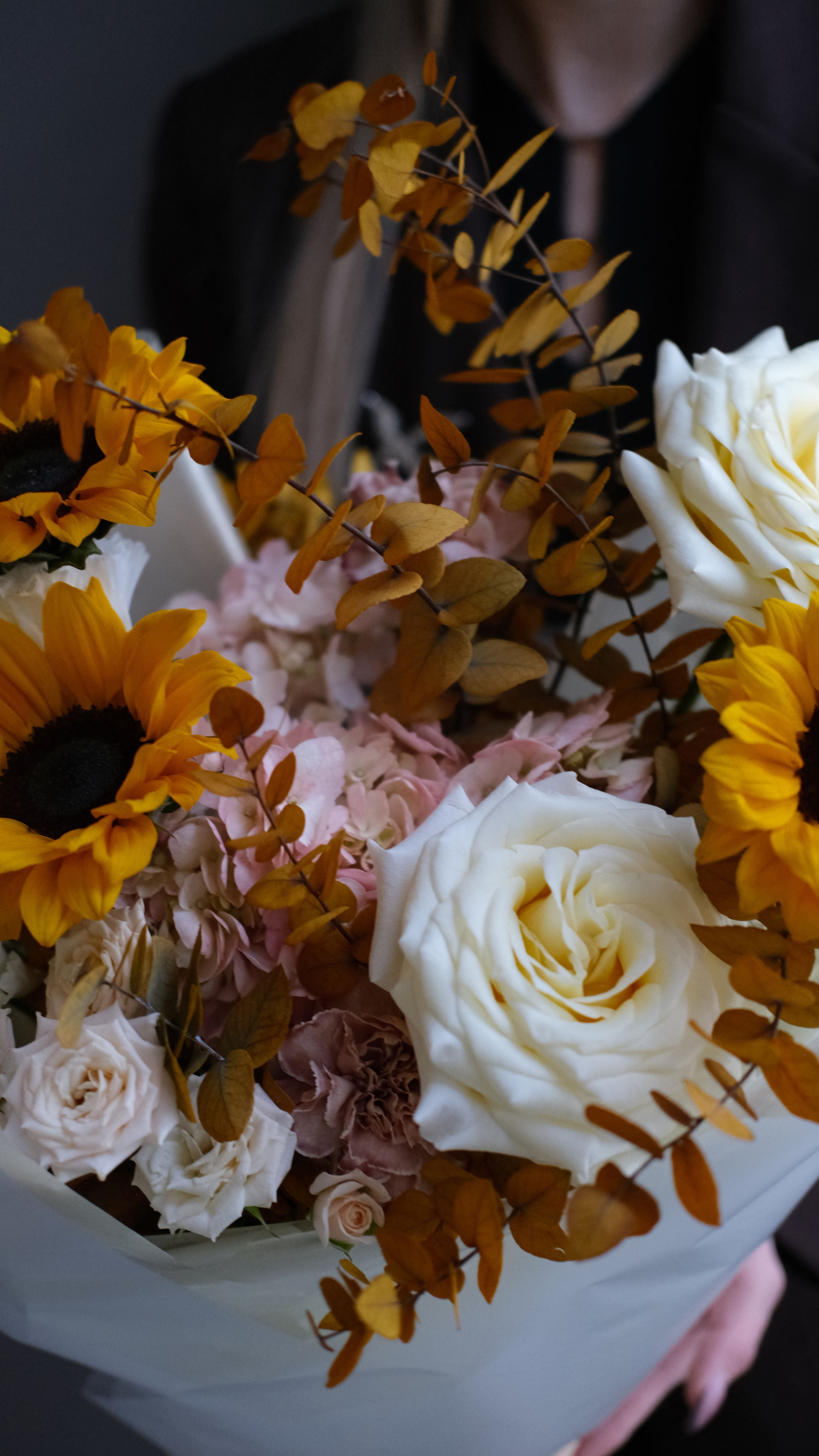 Объятие из цветов — именно так можно назвать этот букет. Мягкие линии, живые краски, ощущение тепла и уюта, которое хочется забрать домой. Это не просто подарок, а маленький кусочек душевного комфорта.