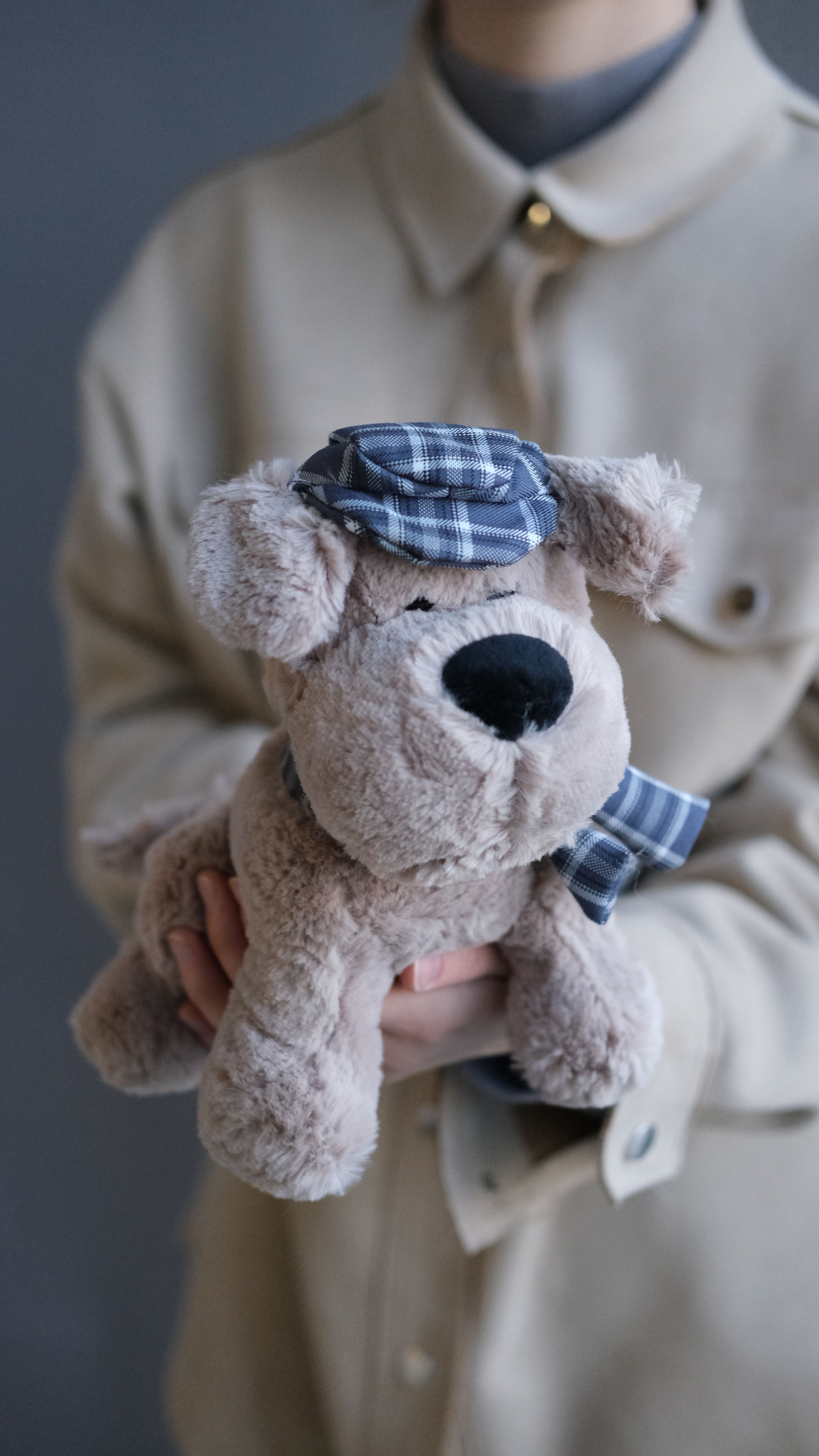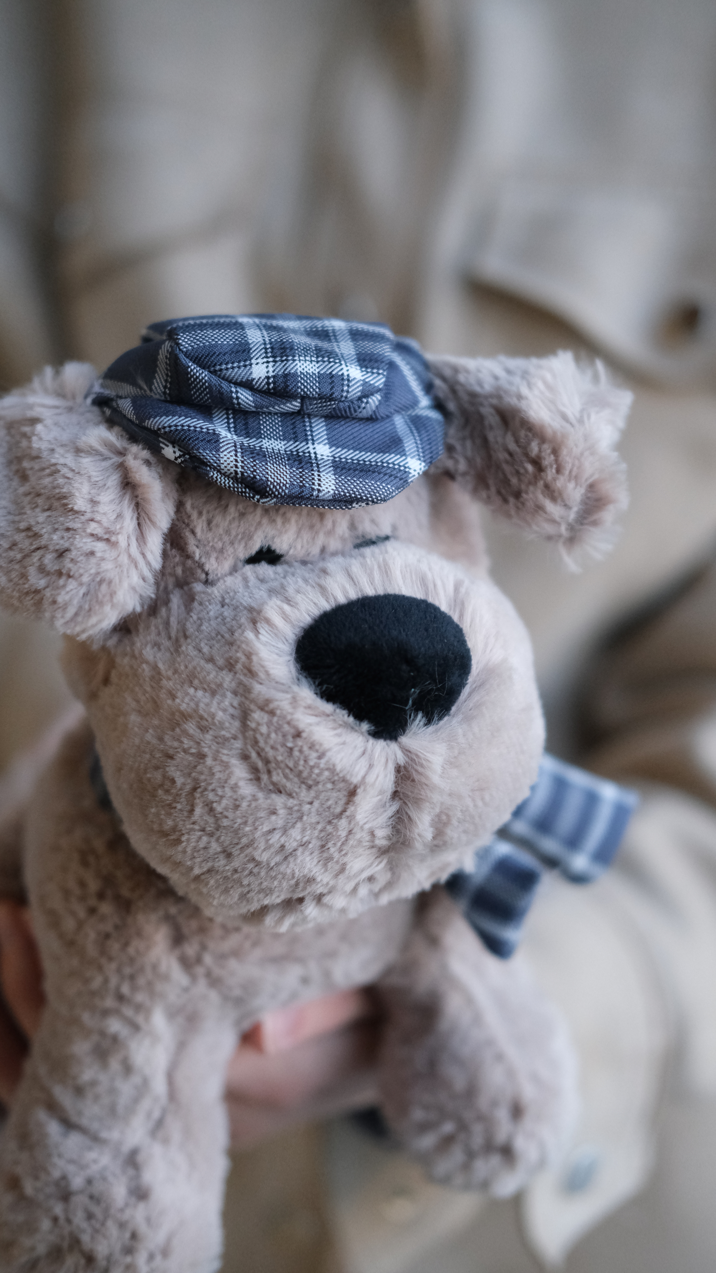 Игрушка Собака кремовая в кепочке и шарфике