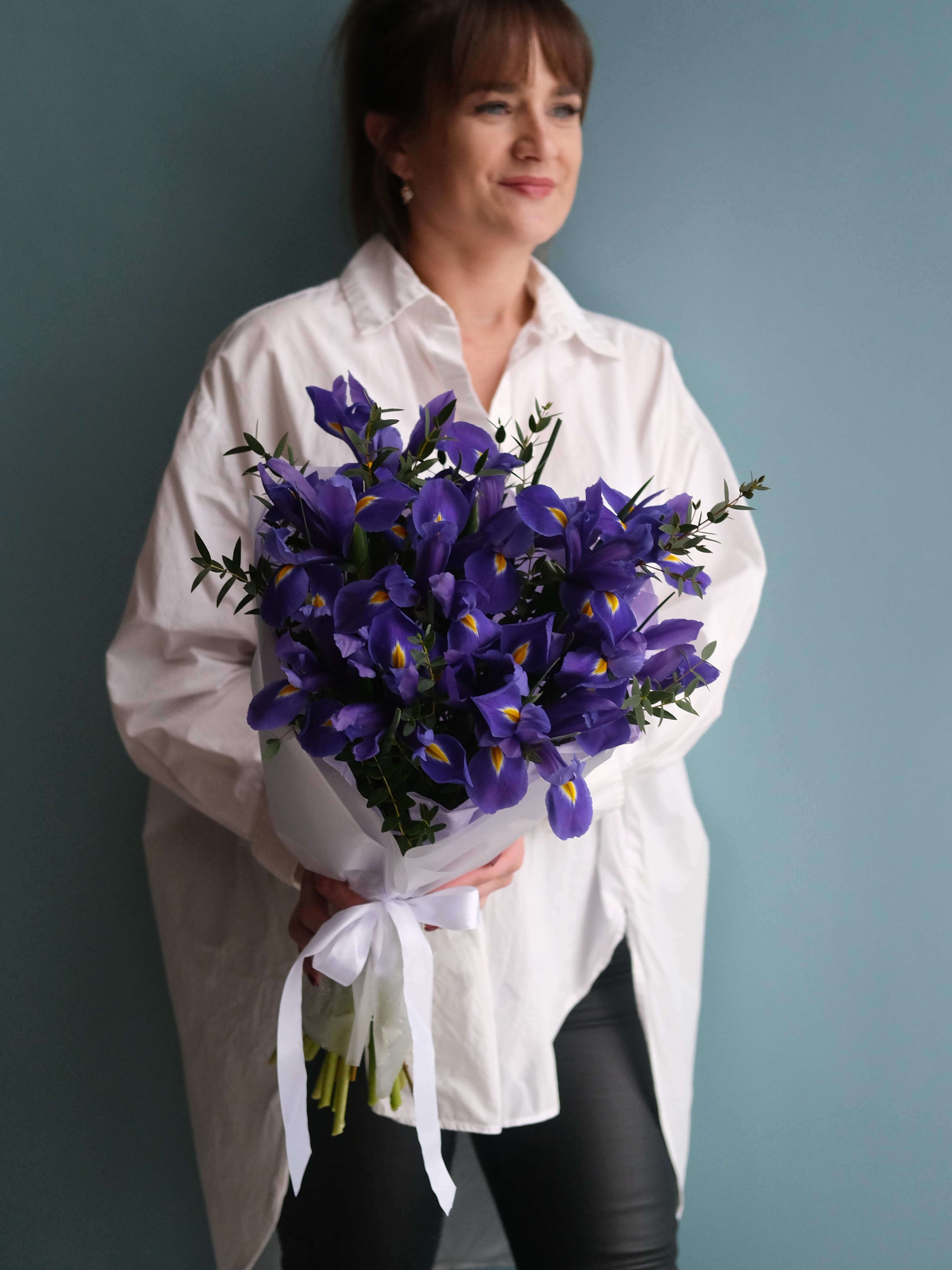 Глубокие синие и фиолетовые тона ирисов создают атмосферу утончённости и романтики. Этот букет — выбор тех, кто любит нестандартную красоту и лёгкий аромат весны.