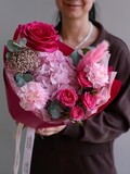 Объятие из цветов — именно так можно назвать эту композицию. Мягкие линии, живые краски, ощущение тепла и уюта, которое хочется забрать домой. Это не просто подарок, а маленький кусочек душевного комфорта.