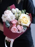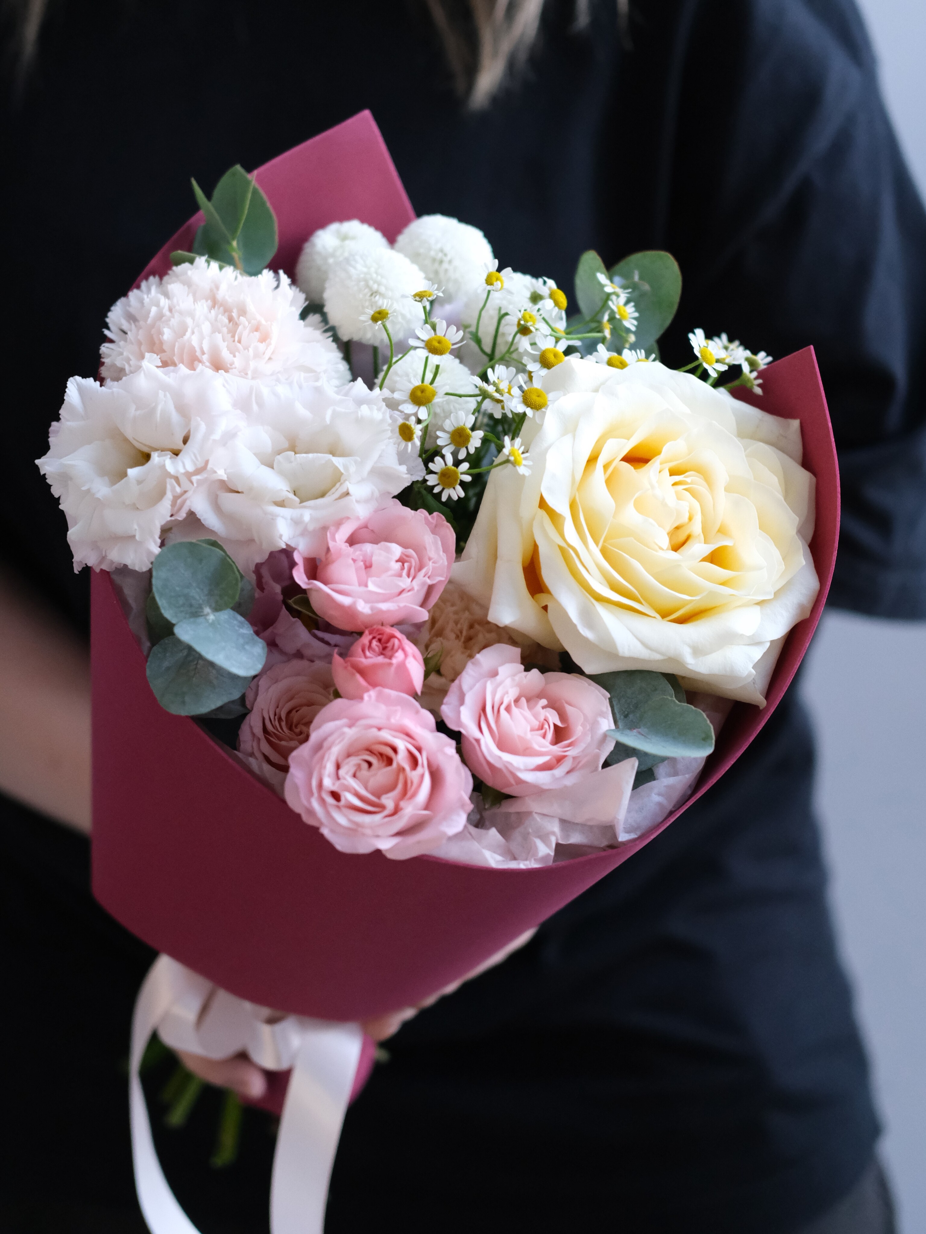 Объятие из цветов — именно так можно назвать этот букет. Мягкие линии, живые краски, ощущение тепла и уюта, которое хочется забрать домой. Это не просто подарок, а маленький кусочек душевного комфорта.