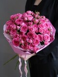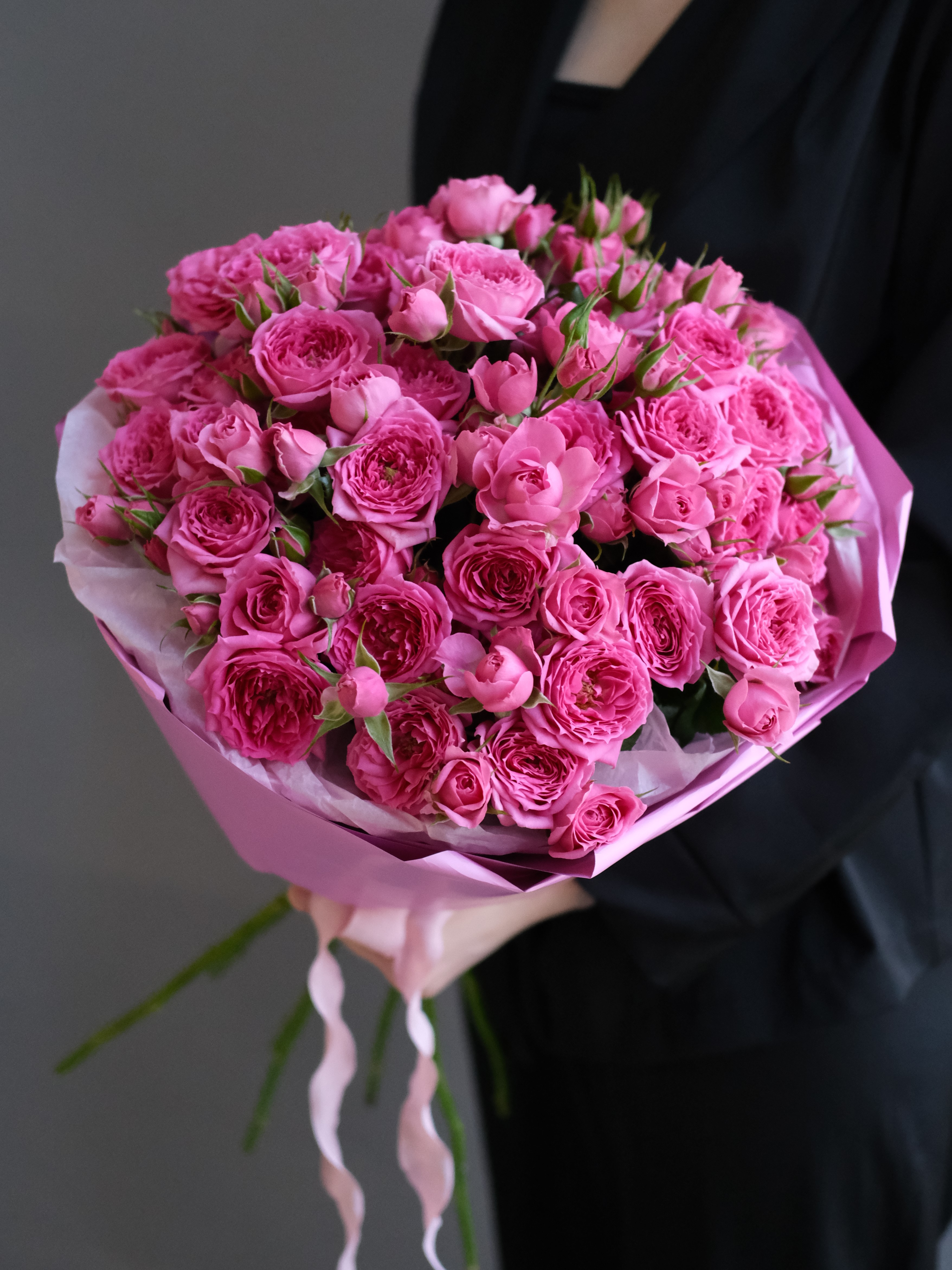 Моно-букет из кустовых роз — это гармония лёгкой небрежности и утончённой красоты. Пышные соцветия, собранные в один нежный облак, излучают тепло и элегантность. Каждая веточка дарит свой акцент, создавая объёмную фактуру и богатую палитру оттенков. Такой букет говорит о чувствах без лишних слов и подойдёт как для особого случая, так и для тёплого знака внимания