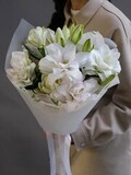 Этот букет — как обещание счастья. Нежный, но уверенный, он несёт в себе тепло и заботу. С ним каждый день становится ярче, а праздник — душевнее.