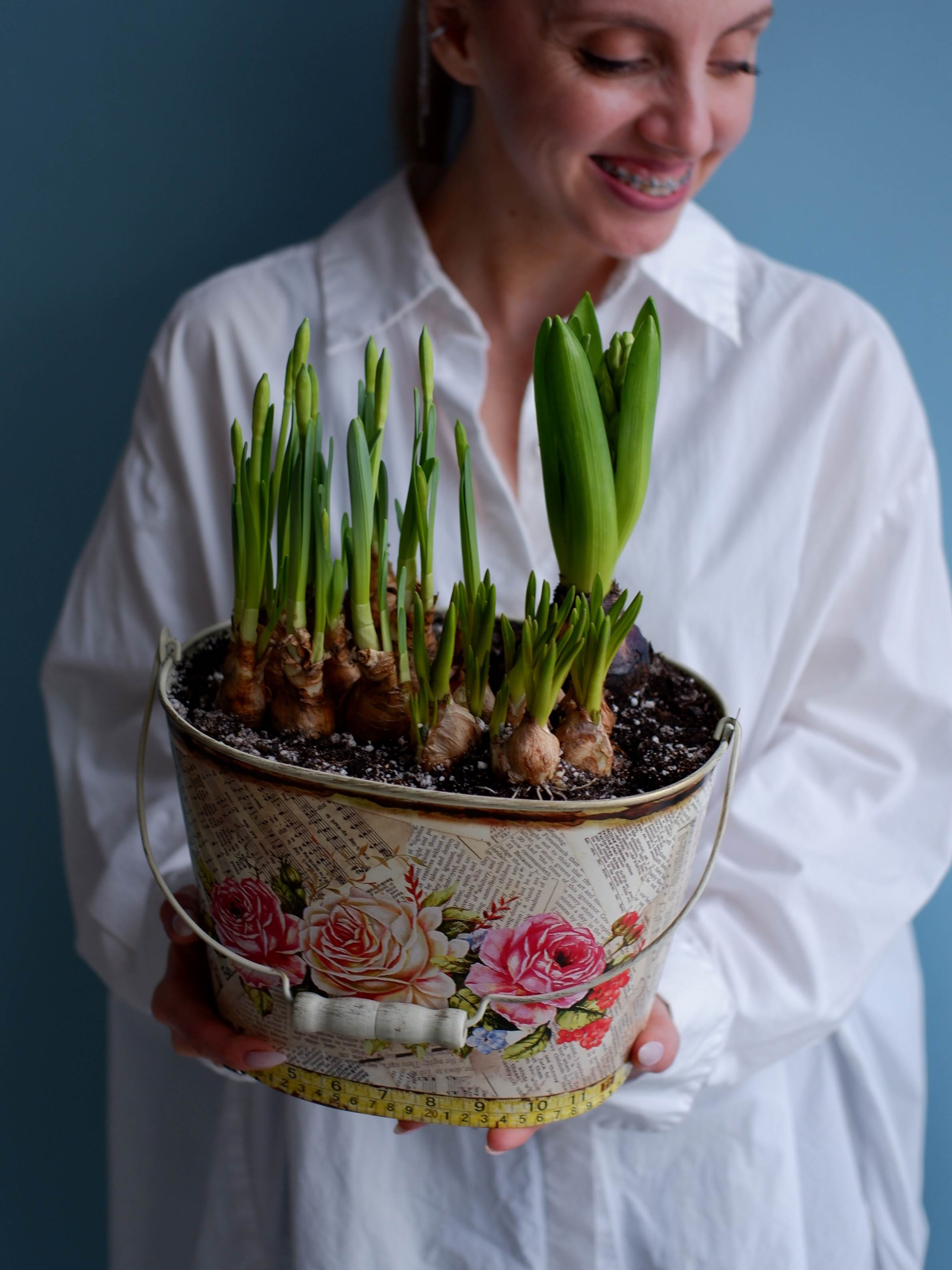 Композиция с первоцветами — это само олицетворение весны. Нежные синие мускари создают ароматную мини-картину пробуждения природы. Эти цветы словно говорят: *«Весна уже рядом!»*