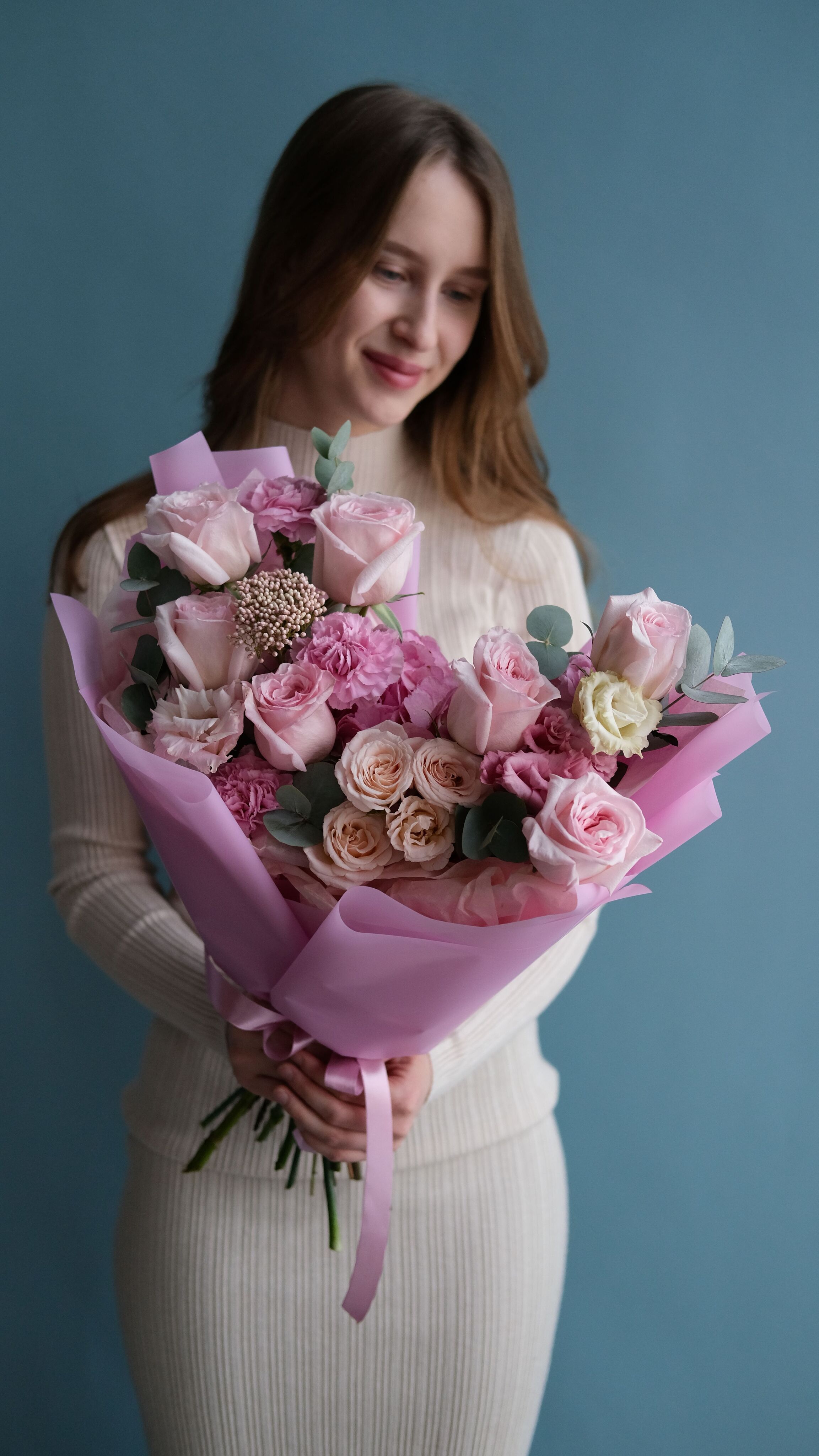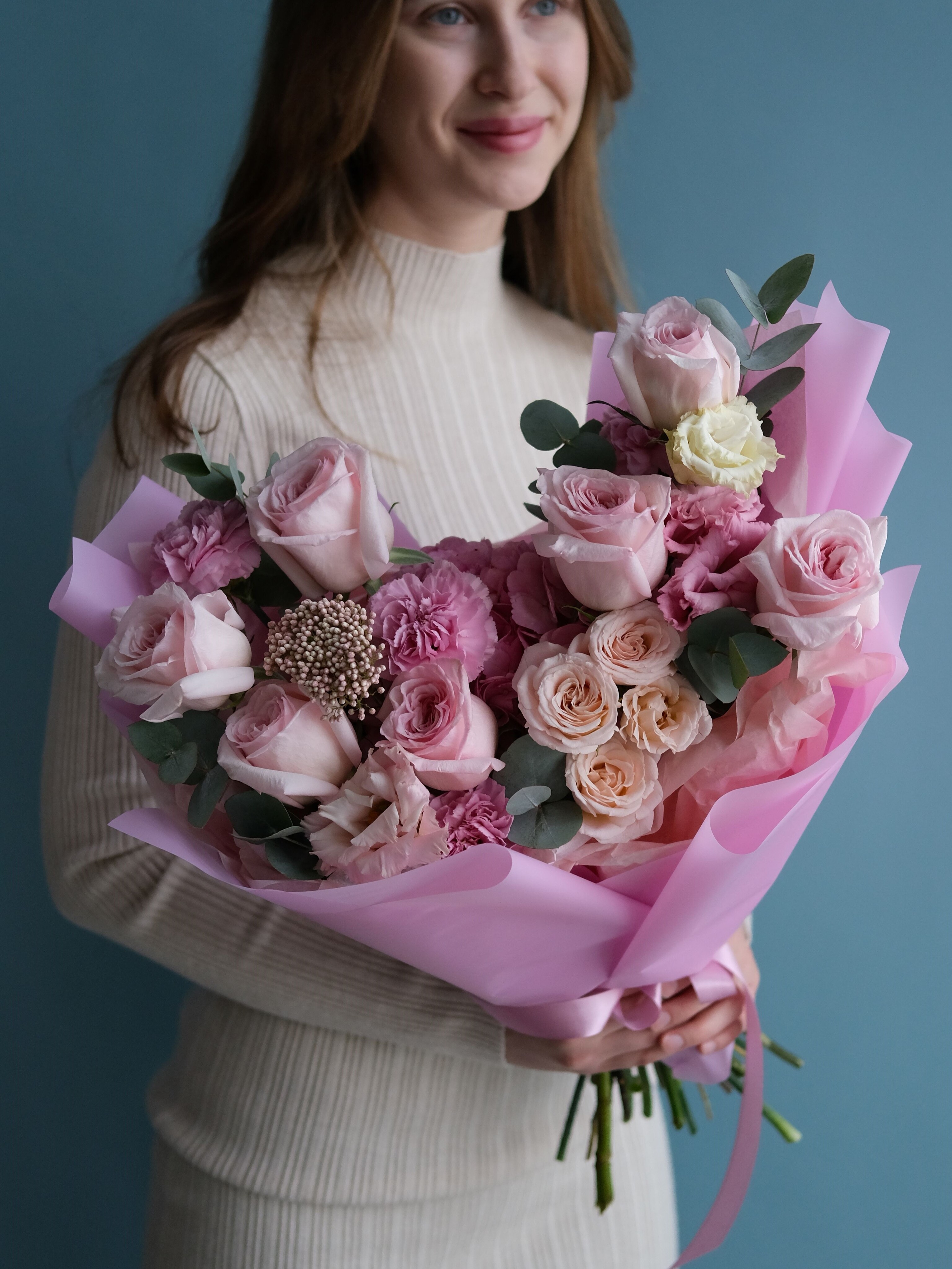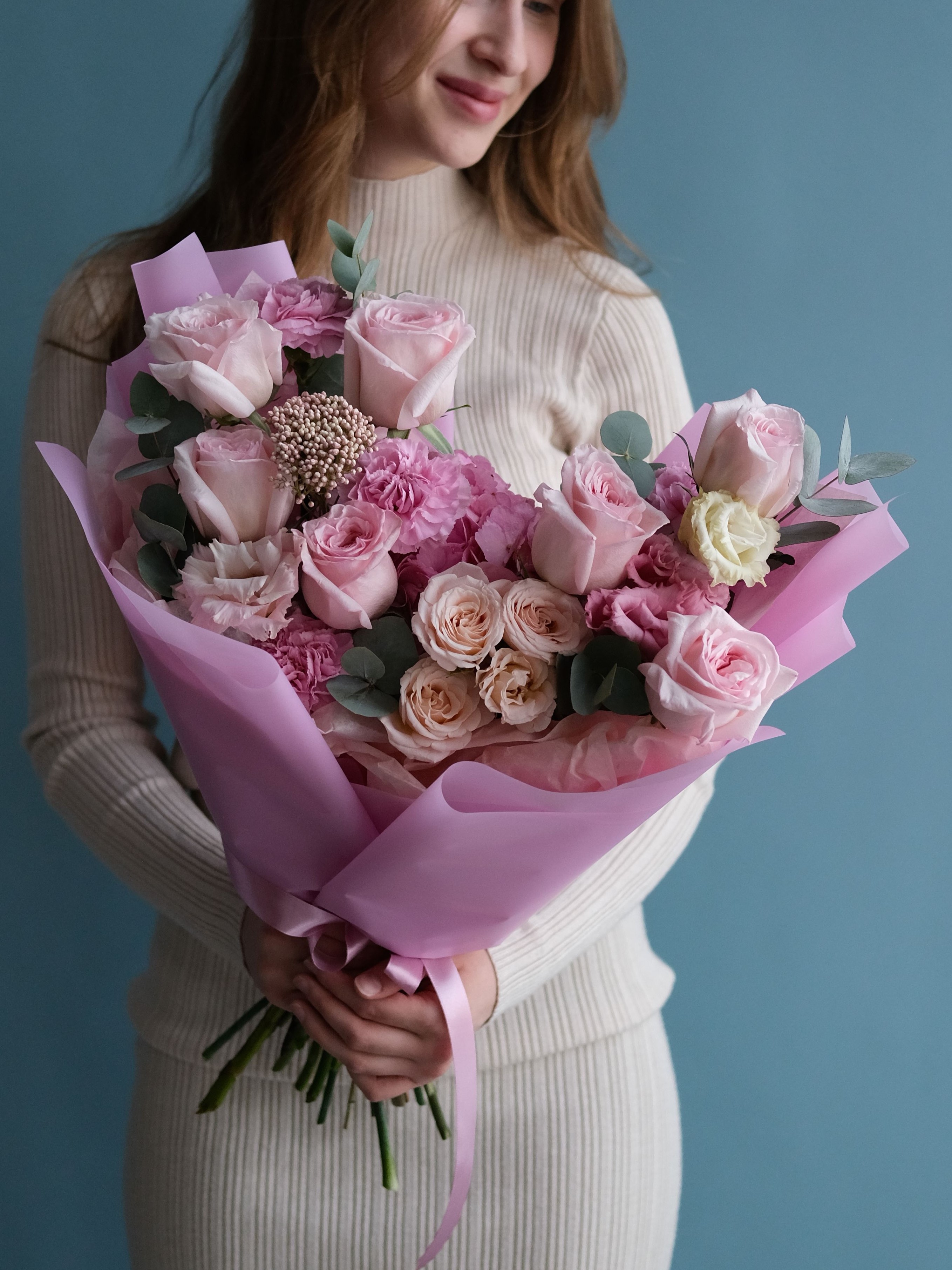 Нежный розовый букет, словно символ нового начала и внутренней гармонии. Он олицетворяет силу женственности и момент, когда всё вокруг пробуждается к жизни. Подарите его тому, кто сейчас готов раскрыться миру и расцвести заново.