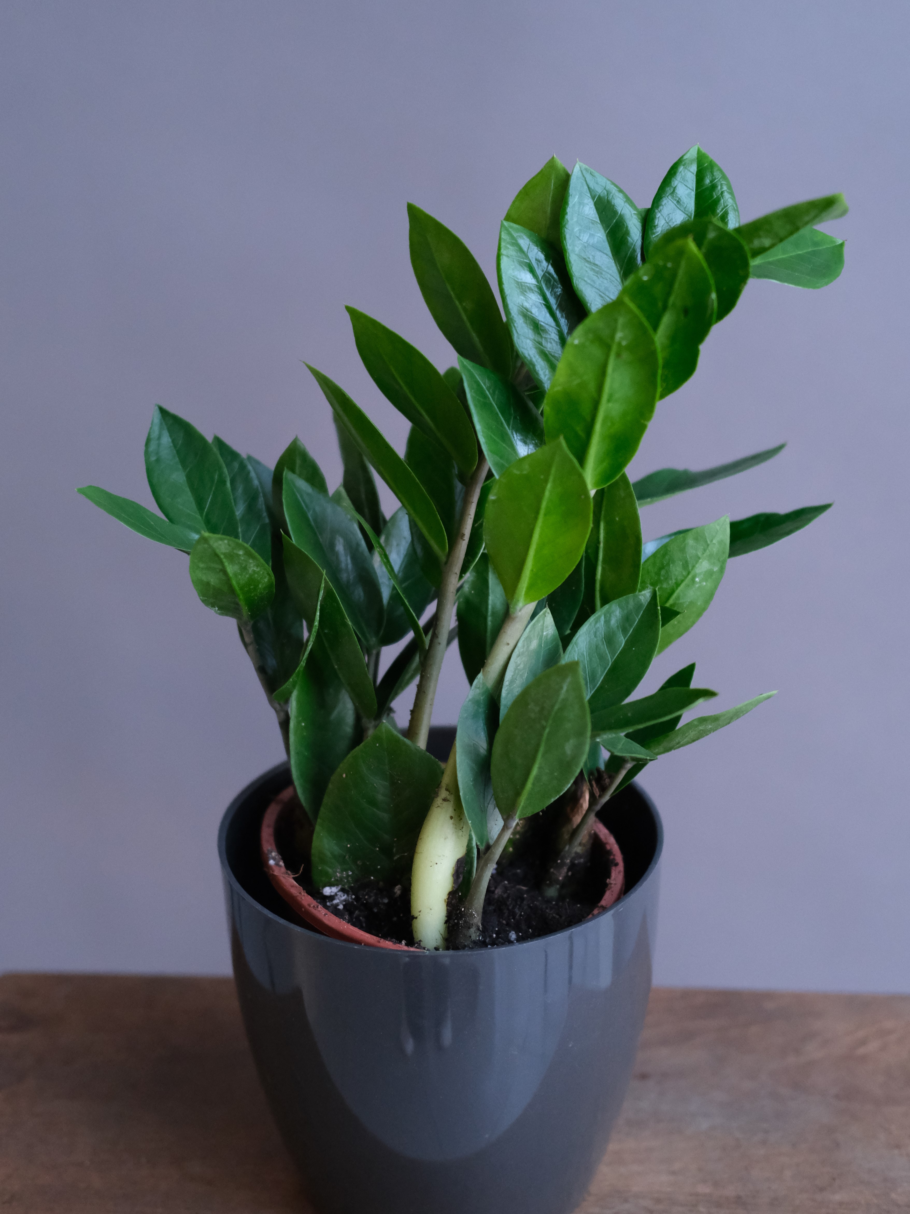 При уходе за замиокулькасом освещение стоит сделать ярким, но рассеянным. Прямой солнечный свет не должен попадать на цветок, иначе на листьях могут появиться ожоги. Если вы принесли горшок из магазина, растение надо на 4–5 дней поместить в полутень — для адаптации.